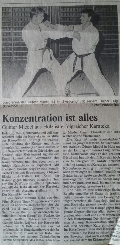 Mit 13 Jahren erlernte ich das Karatetraining und fing an meinen Fokus zu verlagern und meinen Verstand zu erarbeiten. Mit Disziplin und Konsequenz folgten dann auch die ersten Erfolge. Ich wurde mehrfacher Landesmeister in den Bereichen Jugend, Junioren und Senioren im Bereich Kata. Da hier körperliche Anforderungen sowie geistige Höchstleistungen gefragt sind musste ich mich in diesem Bereich zusätzlich enorm weiterbilden.